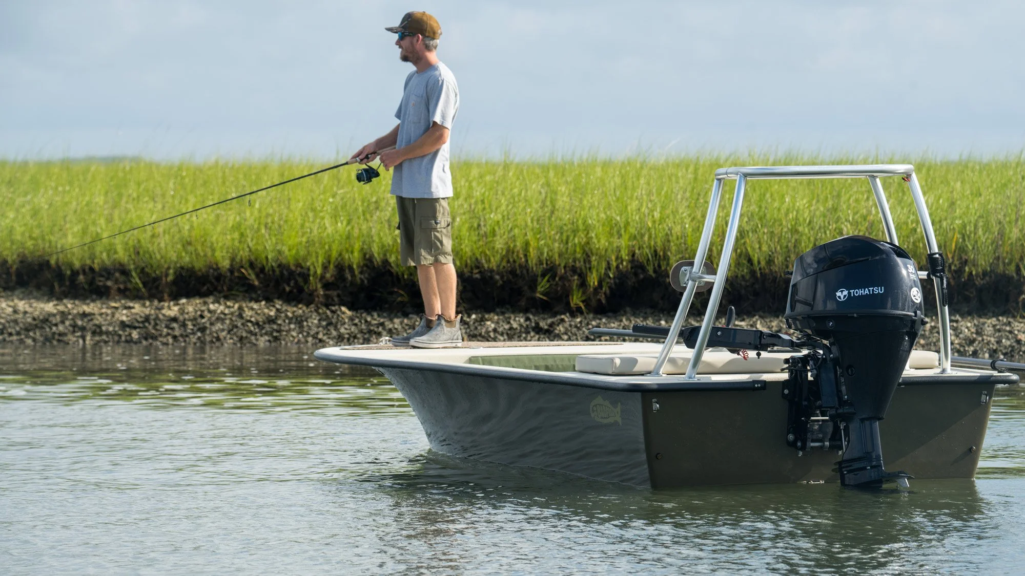 The Badfish 18 Lowlands Edition is intended to be a “blank canvas” that can be rigged for whatever you’ll use it for — inshore or freshwater fishing, duck hunting, crabbing, or just knocking around the sounds and creeks. Start with a basic tiller or side-console configuration and then add a grab bar, center coffin box, pedestal seating, pot puller, removable duck blind, or whatever else you need.